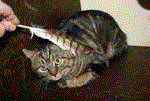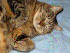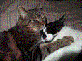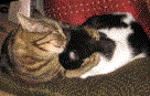 Mark Twain, a feral cat who survived several Minnesota winters before rescue & rehabilitation to give five more years of his life as an empathic and spirited commensal. He was a ‘Bhodicattva”: An enlightened, compassionate, gentle and playful feline who never wanted to go back outdoors. He shattered the myth that feral cats cannot be rehabilitated. His coming around to trust us took 4 months before he would come out of his hiding place in our home. Gentle grooming and soliciting play with a feather were catalysts for trust and social interaction. At night he enjoyed wild chasing games and in bed was a cuddle puss who often cried out in his sleep, clear evidence of PTSD after surviving at least 4 Minnesota winters according to one neighbor who say him on occasion come to her deck and look at her cats through the glass door but never put food out for him. He helped settle down another stray cat, black and white Pinto Bean whom we rescued one mid-winter’s day and they became close buddies until Twain died from a stroke.