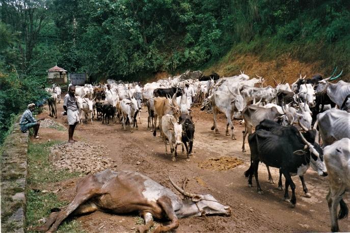 The BBC reported the Indian government is providing more feed for the thousands of confiscated cattle “saved” from slaughter by Cow Protection vigilantes while the meat-deprived Muslims and Dalits cannot afford sufficient feed for their own milk cows. Many of these cows must forage garbage piles and wander the streets in search of food, often dying slowly and agonizingly from internal impaction by the many kilograms of plastic bags they consumed and thought were food; and by vehicular traffic, occasionally being clubbed for stealing from market stalls. Hundreds of thousands of “scrub” cattle graze in wildlife preserves across India along with sheep and goats which wild predators, from jackals and wild dogs to tigers and leopards kill as their main source of food. So there is retaliatory shooting, snaring and poisoning by owners whose animals degrade habitat and spread foot and mouth and other diseases to indigenous herbivores from elephants to Spotted deer and Guar.