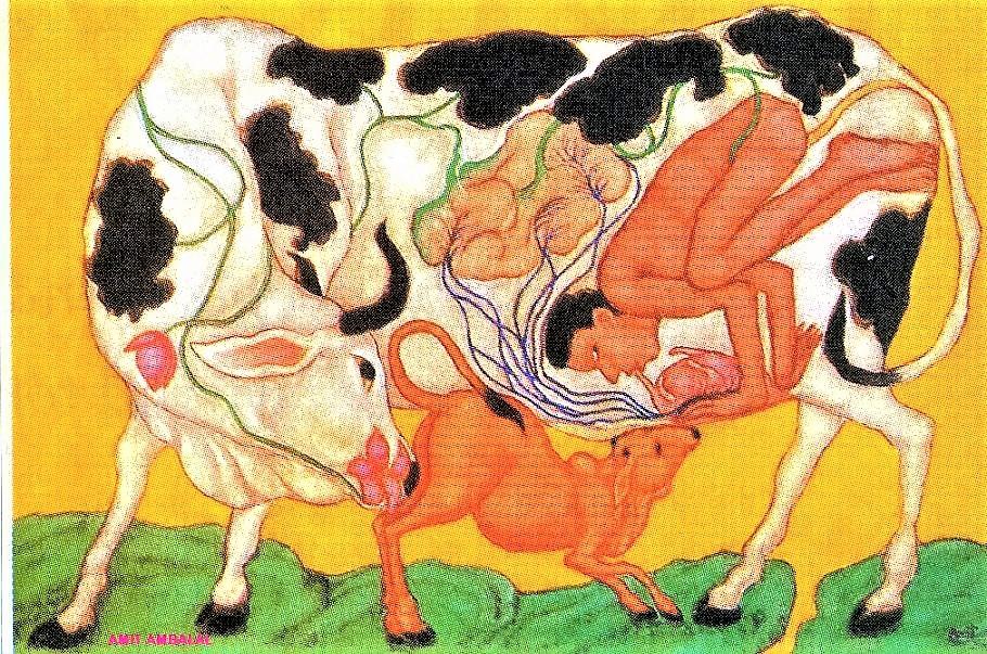 Indian artist Amit Ambalalis’ depiction of Cow-human relationship